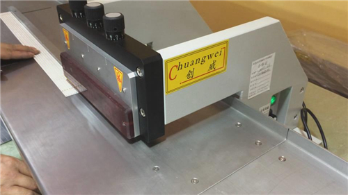 此款分板機研發(fā)生產時間相對于前幾款圓刀分板機來說,是最晚的,也是因為LED照明熱的興起,各種長條的LED燈管燈條分板需要而研發(fā)生產的,最適用分切超長的各式LED燈條板,LED鋁基板等,目前標配的不銹鋼工作臺是1.2米,2.4米。簡而說之也是在CWVC-1S的基礎上增加了兩組圓刀來進行分板加工的,克服了CWVC-1S分切燈條板質量不高的情況,而進行的機型改良。
