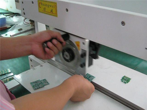 手動走刀分板方式,能有效率控制分板速度,價格經濟性強,可分切鋁基板及玻纖板,尤其利于當PCB拼板批量不多時選用。對于精密件分板,要求應力較小時,用手工分板方式也能得到較好的把控。小批量的玻纖板生產時可以優(yōu)先選用。