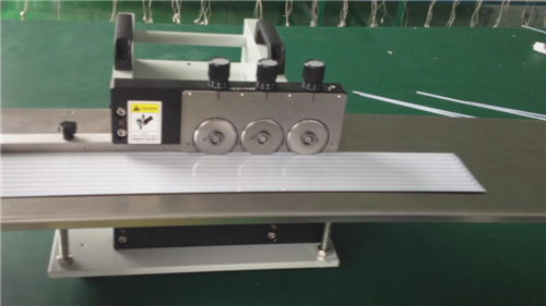 2、led自動(dòng)分板機(jī)由三組圓刀片組成,上下兩片為一組,構(gòu)成一個(gè)切割單元。分別是A、B、C、三組。整個(gè)切割過(guò)程分為三個(gè)階段,A 組刀片先切割電路板40%,接著B(niǎo)刀片再次從A刀片切過(guò)的槽中碾過(guò),再次完成40% 的切割量,最后由C組刀片切割最后的20% 并修光,由于每次的切割量很小,因此切割過(guò)程中產(chǎn)生的應(yīng)力較傳統(tǒng)的一次切斷方式減少了80% 以上,分割好的電路板邊緣平整光滑,板面非常平整,不扭不翹。是目前市面上唯一的走板式能保證切割后鋁板不變形的機(jī)器。